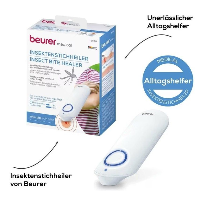 Insektenstiche und -bisse lassen sich auf natürliche Art schwer vermeiden. Für die Behandlung ohne chemische Zusätze wurde der Insektenstichheiler BR 60 entwickelt. Das Must-have zu Hause und unterwegs. Linderung von Symptomen durch gezielte Wärmeeinwirkung auf der betroffenen Stelle werden Juckreiz und Schwellungen gelindert und die Symptomatik verbessert. Angenehmer Heilungsverlauf: Durch die Hitzeentwicklung wird die Heilung beschleunigt, Juckreiz und Schwellungen gehen zurück und der Heilungsverlauf wird häufig als angenehmer empfunden.